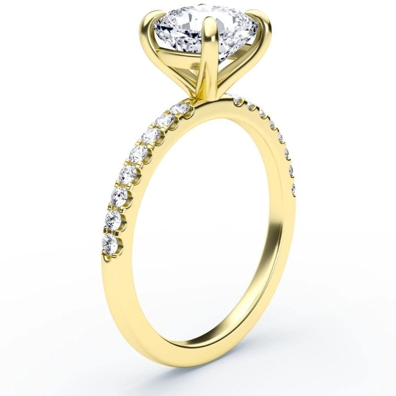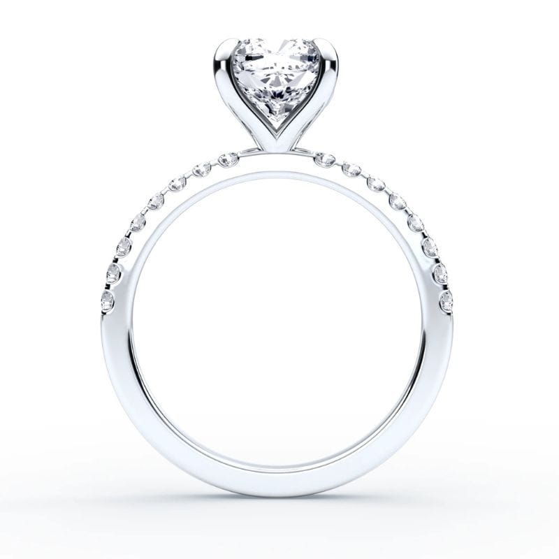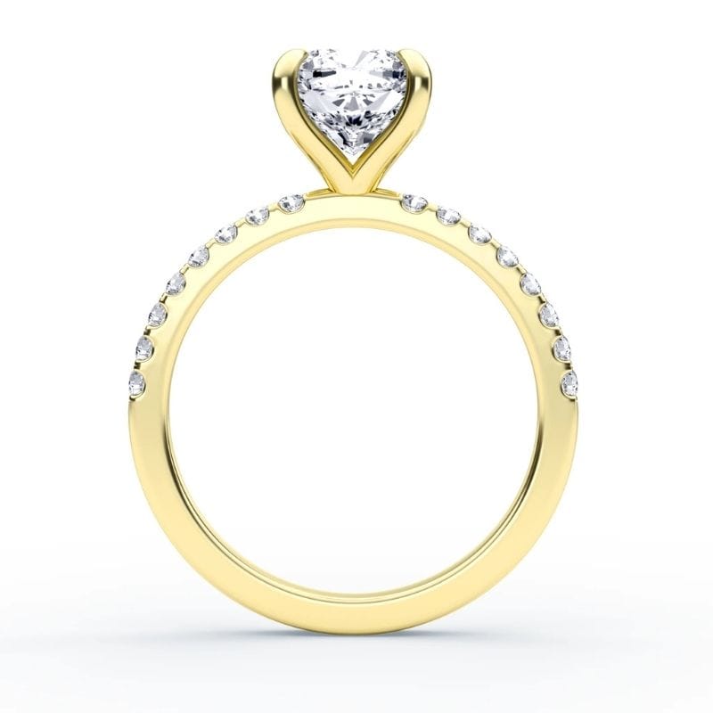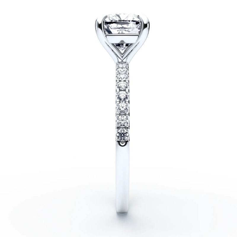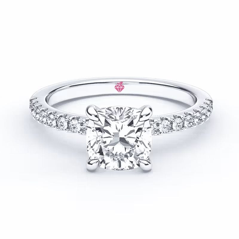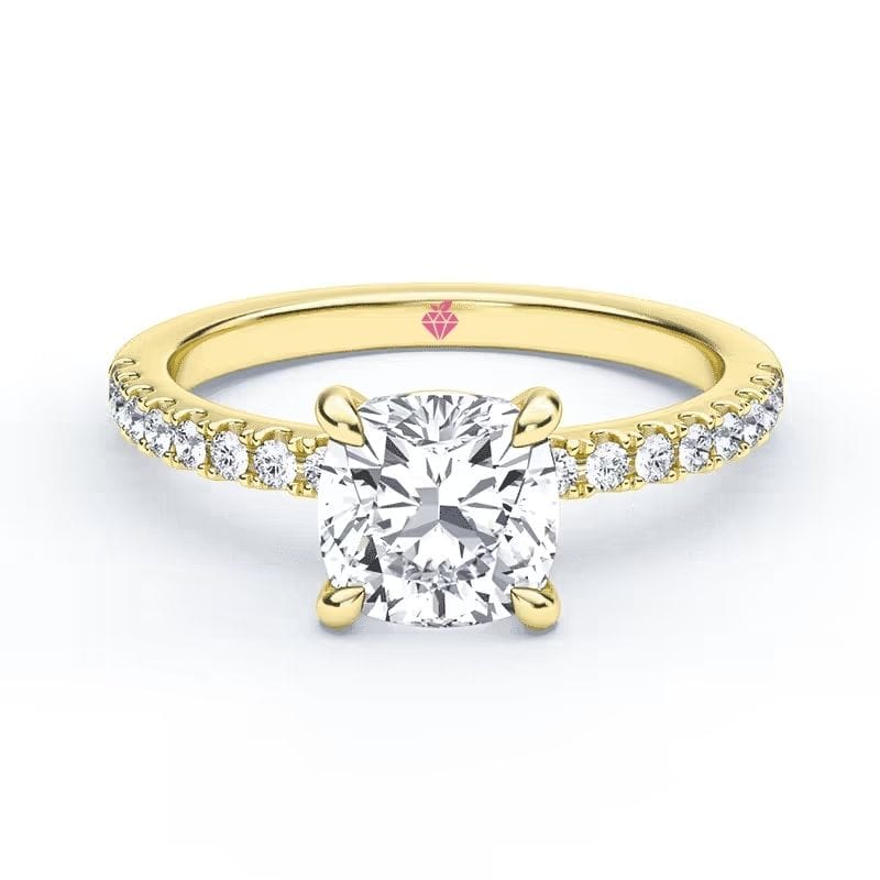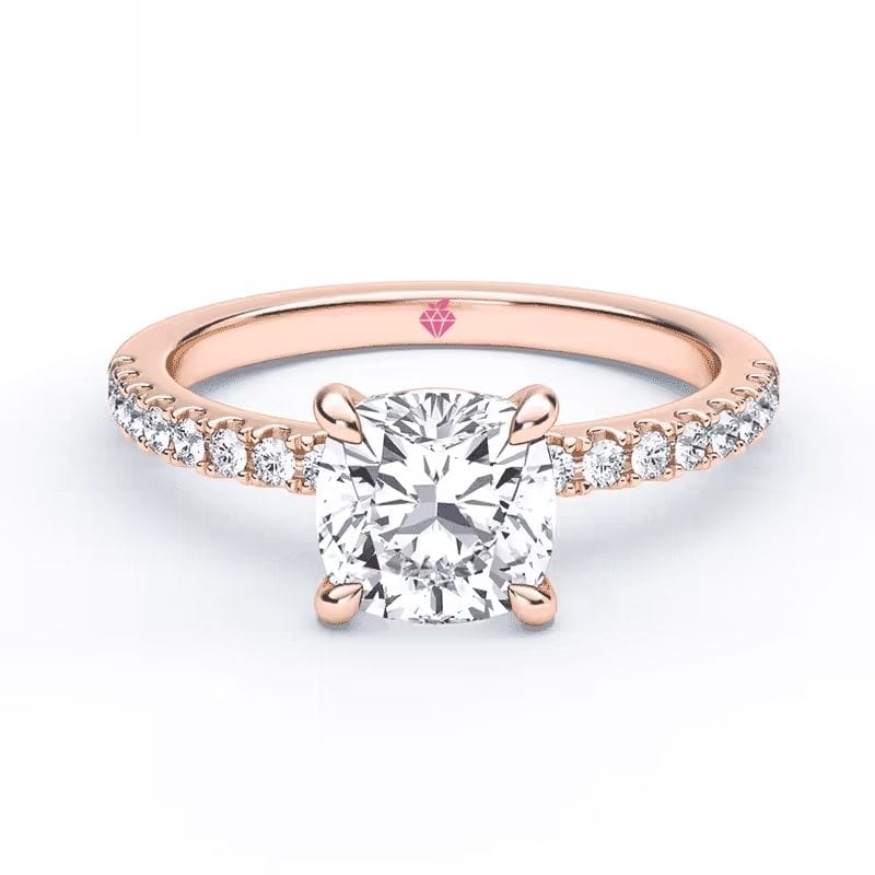 Pagrindinis Cushion pjūvio deimantas šiame dizaine – tai švelni prabanga su giliu simbolizmu. Mažesni akmenėliai žiedo lankelyje dar labiau išryškina žiedo centrinį ir suteikia dizainui vizualinę harmoniją, o integruota komforto zona leidžia jį patogiai nešioti visą dieną su malonumu. Žiedo aukso spalvą galima rinktis iš skirtingų spalvų, kad jis prisiderintų prie asmeninio stiliaus.
