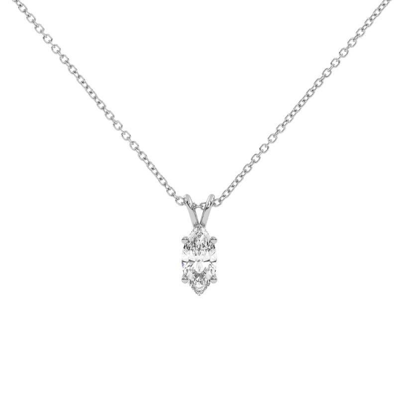 Pakabukas su deimantu – tai išskirtinė klasikos interpretacija. Dėl pailgos, smailėjančios formos šis Marquise pjūvio deimantas vizualiai plonina ir ilgina siluetą, suteikdamas ne tik šviesos, bet ir grakštumo pojūtį. Galima rinktis tarp minimalistinio klasikinio modelio arba papildomo spindesio sukuriančios Halo juostelės – tai priklauso nuo karunėlės pasirinkimo. Markizės forma – subtili, bet įsimintina, todėl šis pakabukas tampa išraiškingu kasdieniu ar šventiniu akcentu.