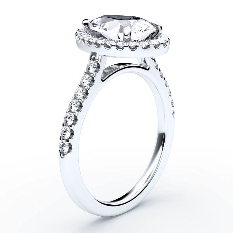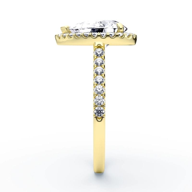 Pear pjūvio deimantas išryškina unikalų charakterį – tarsi tylus prisilietimas prie širdies. Halo detalės spindi iš visų kampų, o patogus lankelis su komforto zona leidžia džiaugtis tiek estetine, tiek praktine žiedo puse. Tai papuošalas, kuris netyčia tampa pasakojimu.